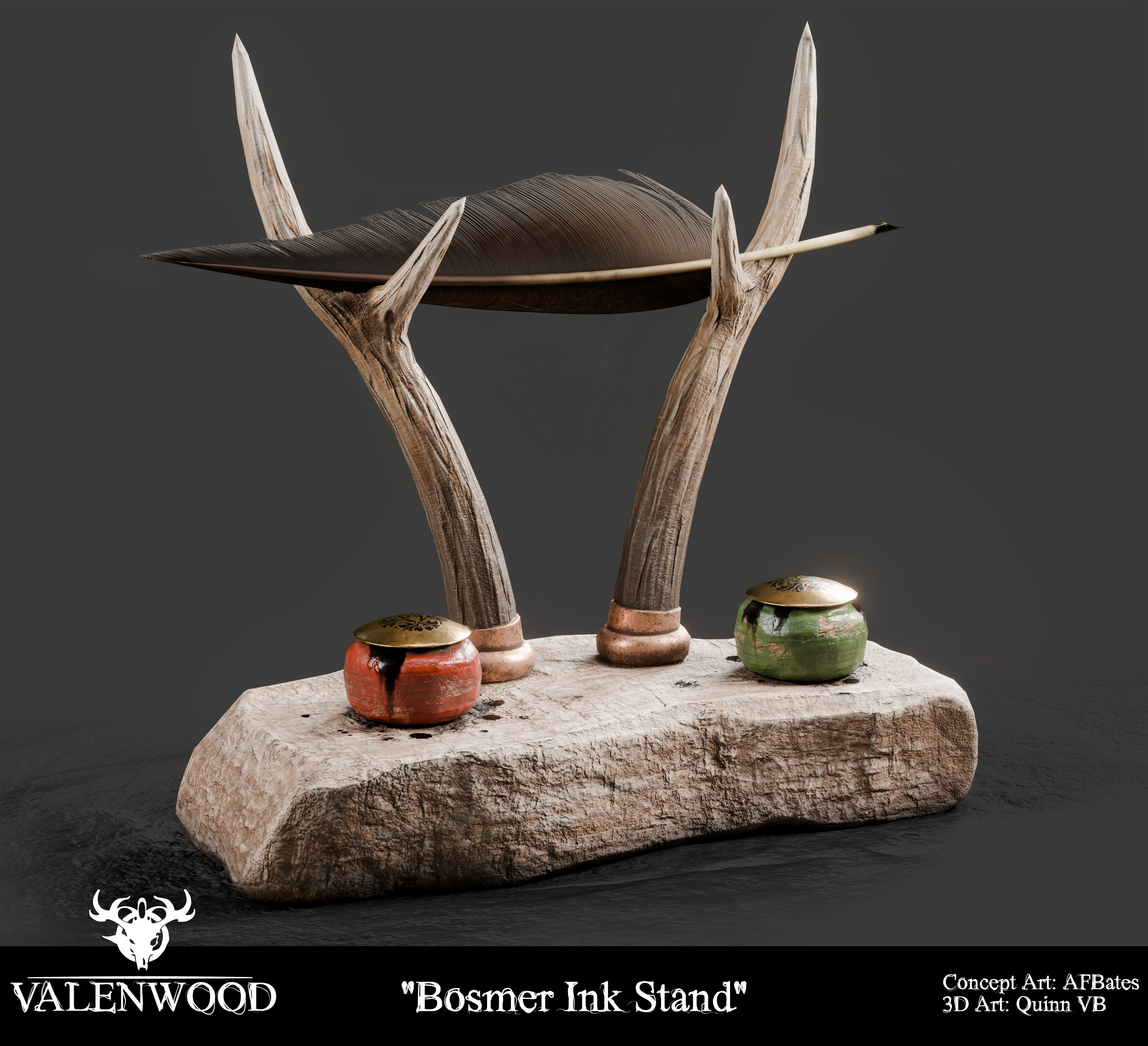 Another asset I made for the Valenwood project for Beyond Skyrim. This was the first time I've worked with 2D cards and sculpted antlers, so it was a fun learning experience. Created in Blender and Substance Painter. Concept art by AFBates.